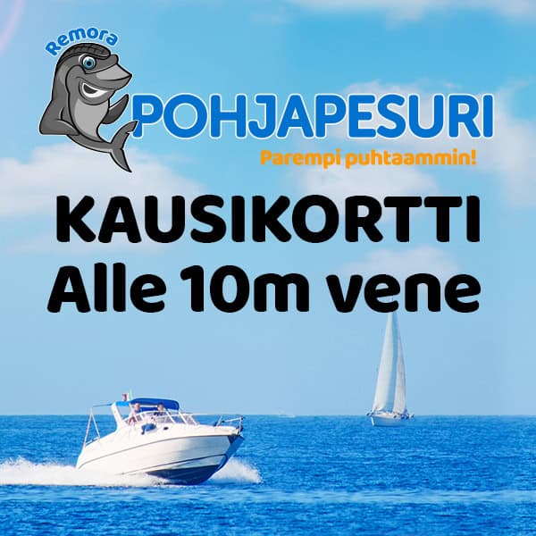 Remora Pohjapesurin kausikortti oikeuttaa rajoittamattomaan pesumäärään kauden aikana (lokakuun loppu). Kausikortti on venekohtainen. Ostaessasi kausikorttituotteen, sinulle toimitetaan sähköpostitse kuponkikoodi, joka oikeuttaa pesuajanvarauksen yhteydessä kassatapahtumassa ilmaiseen pesutuotteeseen. Huom. Osta veneesi rekisteripituuden mukainen kausikortti.